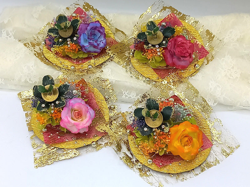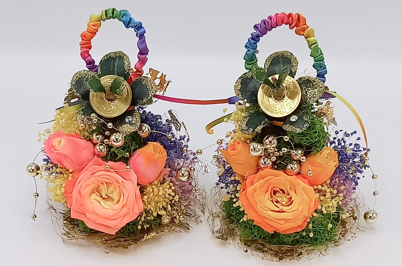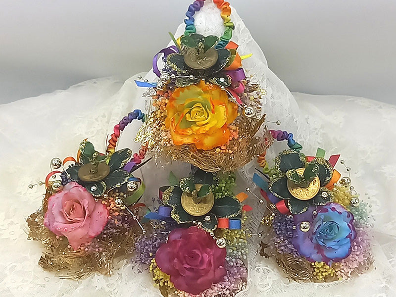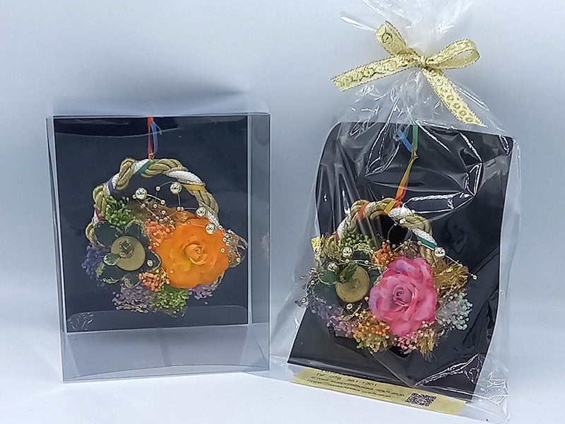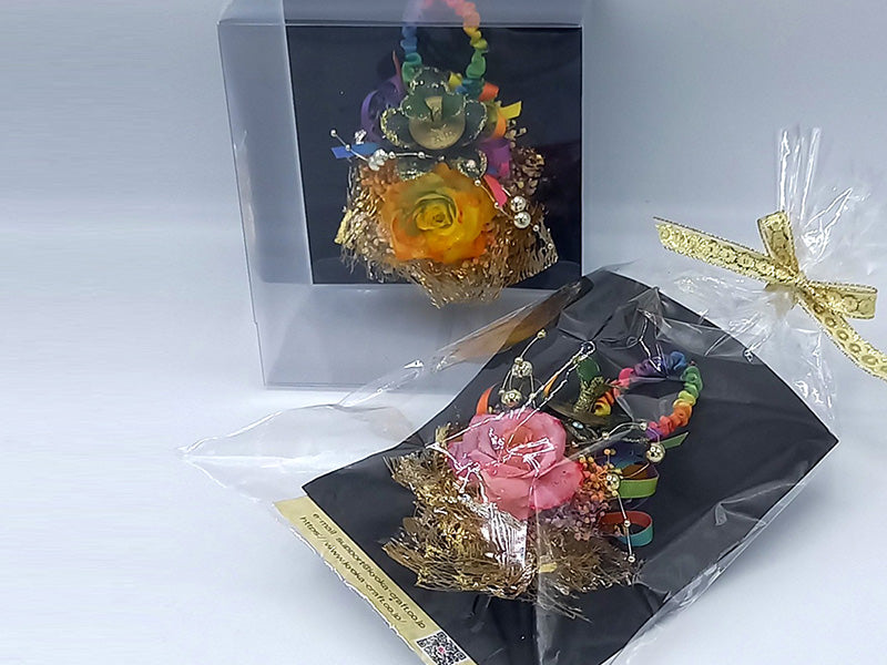 K01. 「手作り金のなる木」&レインボーローズ(造花)miracleミニリースアレンジ