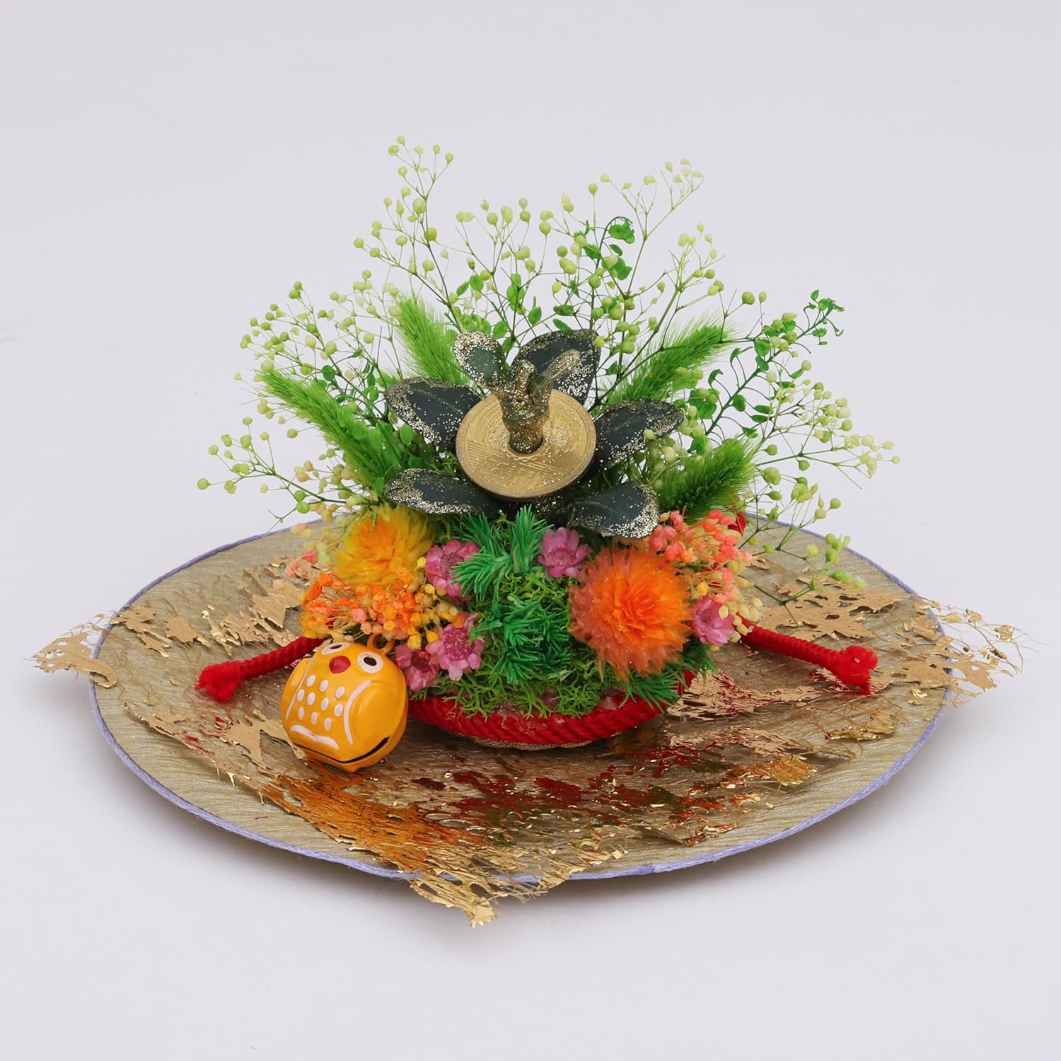 - 【こだわりの手作り】自社採集しプリザーブド加工した千日紅や山ゴケ、カスミ草、草花を陶製蛤貝と共に京華手作り飾り皿へ丁寧にアレンジ。