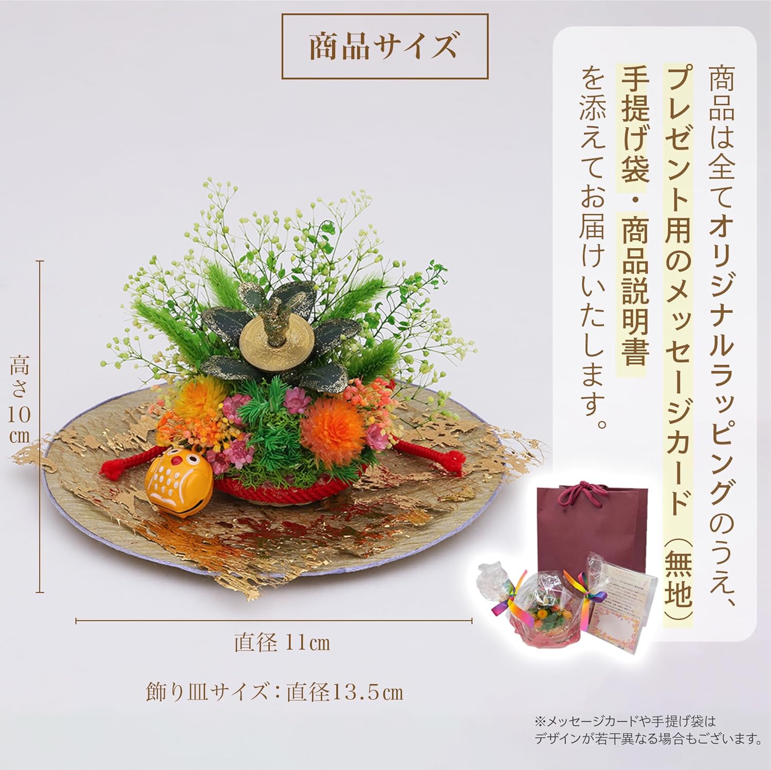 アレンジ部分サイズ:径11㎝×h10㎝/飾り皿サイズ:径13.5㎝